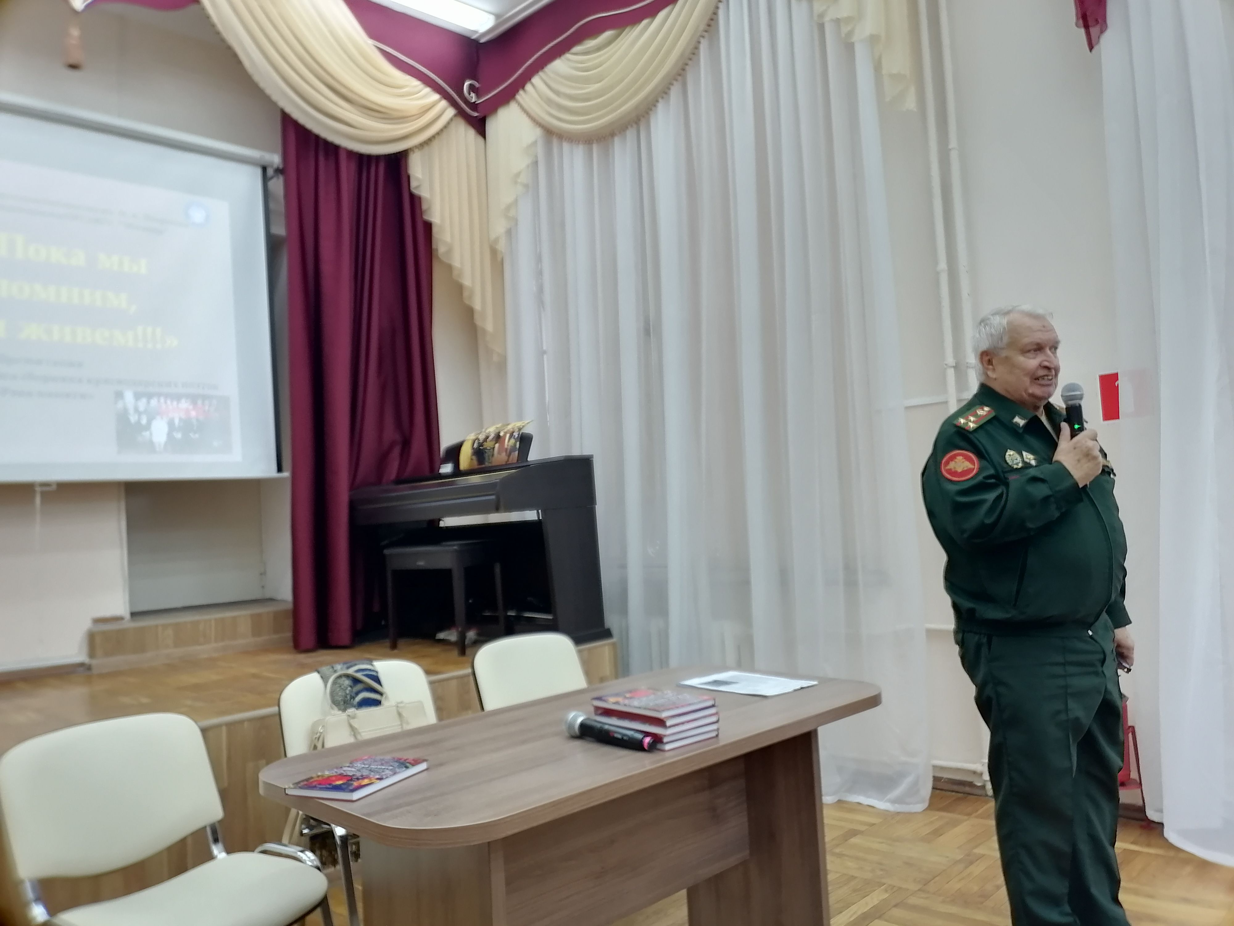 15 ноября 2023 года Краснодарская краевая ОО «Ассоциация ветеранов силовых структур «Мегапир», возглавляемая ветераном военной службы полковником В.И. Бульковским, в Центральной городской библиотеке им. Н.А. Некрасова провела презентацию сборника стихов и прозы Кубанских авторов «Река памяти».