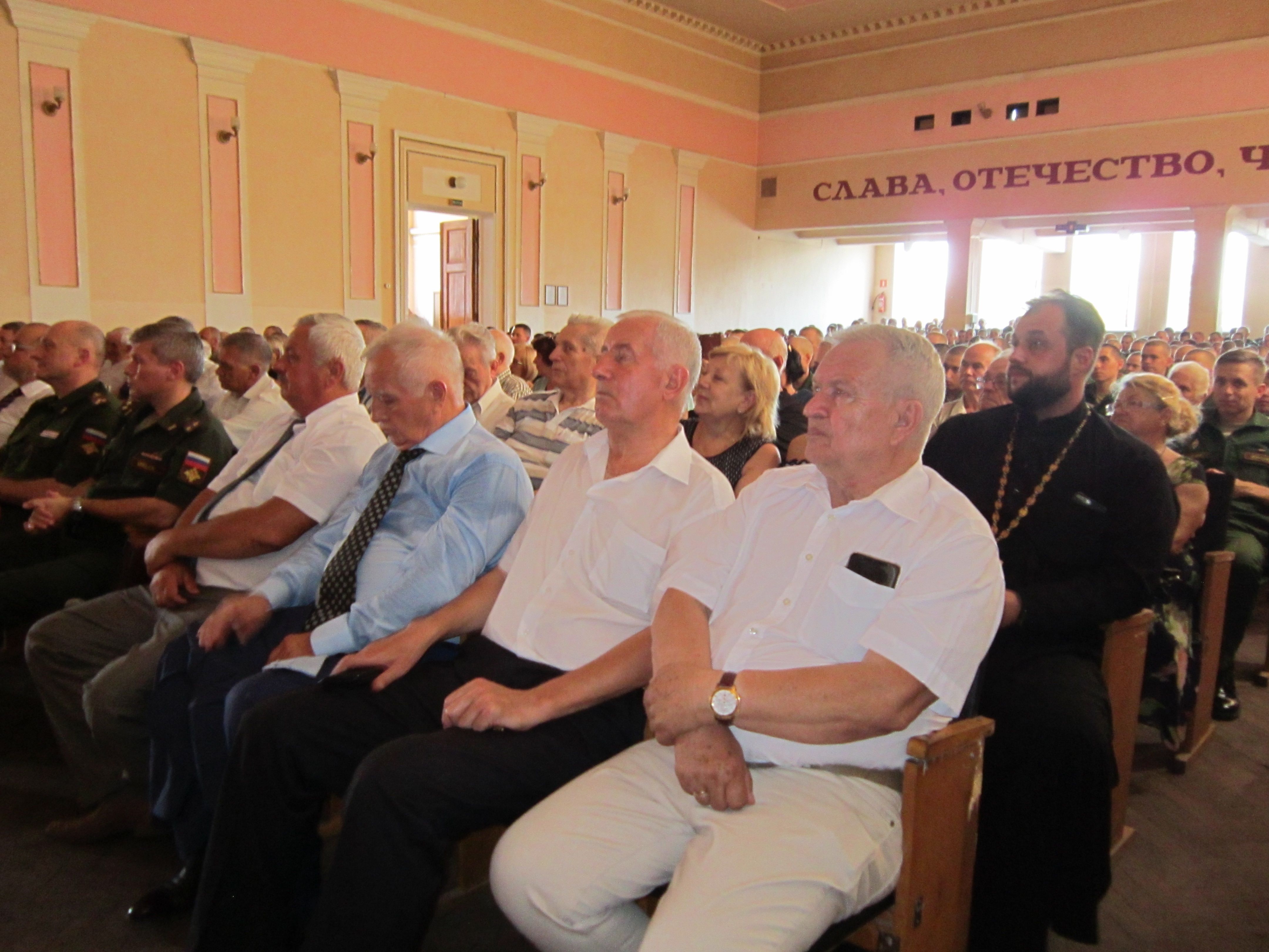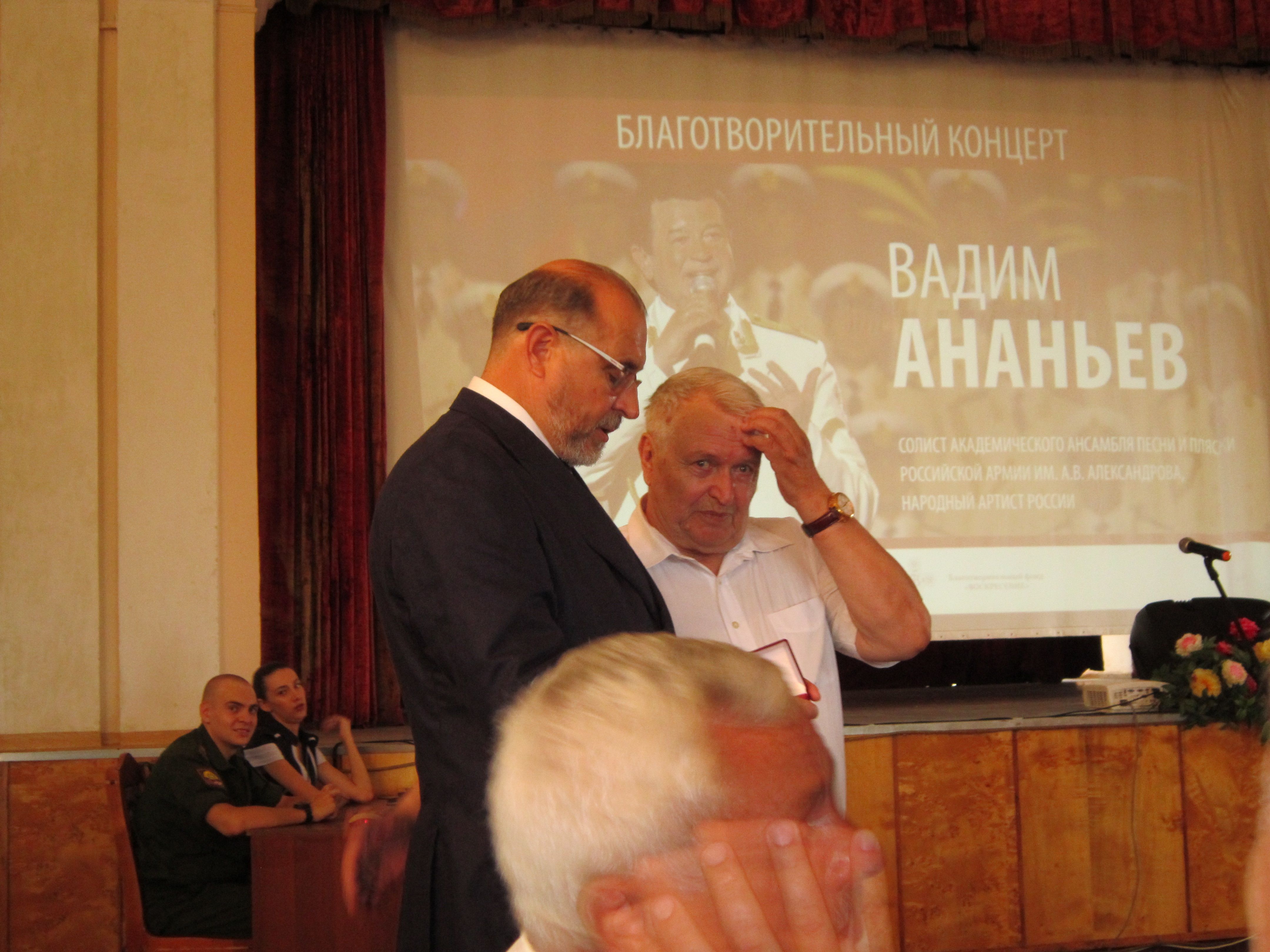 Накануне празднования «Дня офицера России» в актовом зале Краснодарского высшего военного училища имени генерала армии С.М. Штеменко прошёл благотворительный концерт по поводу завершения строительства Храма ПОБЕДЫ – Главного храма Вооруженных Сил Российской Федерации. Перед собравшимися представителями ветеранских организаций Краснодарского края и военнослужащими гарнизона выступил солист академического ансамбля песни и пляски Российской Армии имени А.В. Александрова, народный артист России Вадим Ананьев.